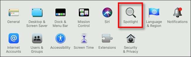 Nếu điều đó đúng, mở tùy chọn hệ thống bằng cách nhấp vào biểu tượng Apple ở góc trên bên trái của màn hình và chọn "Tùy chọn hệ thống". Khi sở thích hệ thống mở ra, nhấp vào "Spotlight".