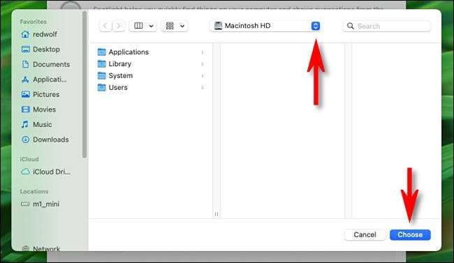 Trong cửa sổ xuất hiện, chọn "Macintosh HD" từ menu thả xuống gần đầu cửa sổ. Điều này sẽ bao gồm tất cả các tệp trên ổ cứng chính của bạn. Khi nó yêu cầu xác nhận, nhấp vào "OK."