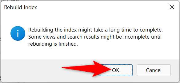 Trong dấu nhắc xuất hiện, nhấp vào "OK" để tiếp tục xây dựng lại chỉ mục.