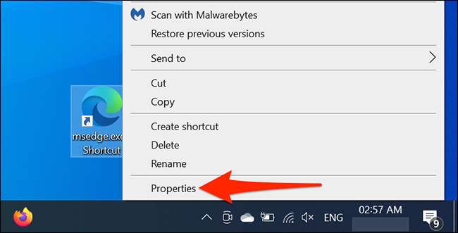 Đóng cửa sổ Tệp Explorer. Trên máy tính để bàn của bạn, nhấp chuột phải vào phím tắt mới được thêm vào và chọn "Thuộc tính" từ menu.