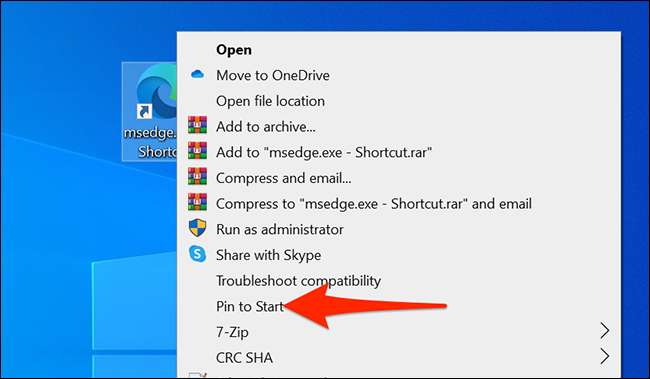 Để truy cập phím tắt này từ menu Bắt đầu, nhấp chuột phải vào phím tắt và chọn "Pin để bắt đầu". Bây giờ bạn có lối tắt tùy chỉnh này ở khung bên phải của menu Bắt đầu.