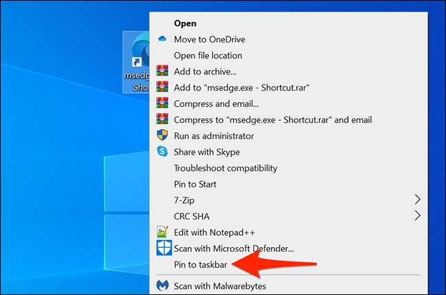 Tương tự, để thêm phím tắt này vào thanh tác vụ, nhấp chuột phải vào phím tắt và chọn "Ghim vào thanh tác vụ."