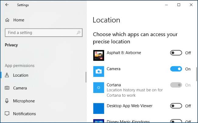 Các ứng dụng Windows 10 hiện đại có các quyền mà bạn có thể kiểm soát, giống như các ứng dụng iPhone, iPad và Android hiện đại. Bạn có thể kiểm soát quyền truy cập vào các tài nguyên như vị trí, máy ảnh, micrô và ảnh của mình.