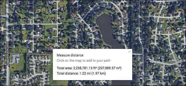 Trong suốt quá trình đánh dấu, tổng khoảng cách cho đến nay được hiển thị ở cuối cửa sổ bật lên "Đo khoảng cách". Nó cũng hiển thị tổng diện tích hình vuông của khu vực, có thể hữu ích nếu bạn đang tạo một mạch hoàn chỉnh hoặc chỉ muốn đo diện tích của một khu vực cụ thể.
