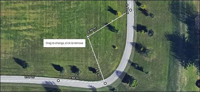 Bây giờ, hãy đi theo đường nhỏ và nhấp vào bất cứ nơi nào nó uốn cong để đặt các điểm đánh dấu đo chính xác theo đường đi.