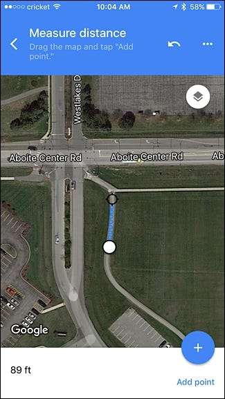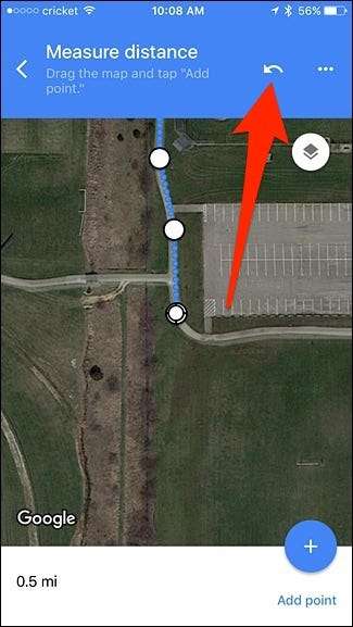 Khi tiếp tục, bạn sẽ nhận được thông tin cập nhật theo thời gian thực về tổng khoảng cách bạn đã đánh dấu. Rất tiếc, ứng dụng không hiển thị cho bạn tổng diện tích như giao diện web trên máy tính để bàn.