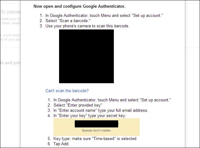 Mặc dù bạn có thể viết ra mã được hiển thị ở đây và giữ nó ở một nơi an toàn, nhưng đó không nhất thiết là một ý tưởng hay - bất kỳ ai tìm thấy mã đều có thể nhập mã vào điện thoại của họ và xem mã xác thực dựa trên thời gian của bạn.