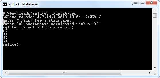 Sau đó, bạn có thể sử dụng trình soạn thảo sqlite để mở tệp và xem nội dung của nó. Nếu bạn đang sử dụng chương trình sqlite3 dòng lệnh , sử dụng các lệnh sau:
