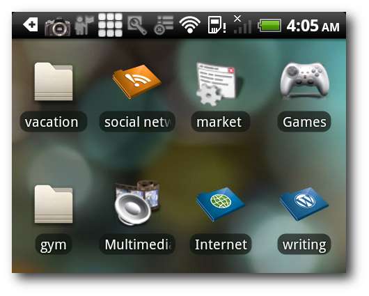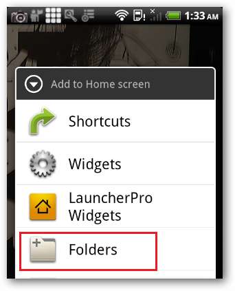 Đây là cách tạo các thư mục trên màn hình chính của bạn — chạm và giữ màn hình chính trong vài giây để hiển thị menu “Thư mục”.