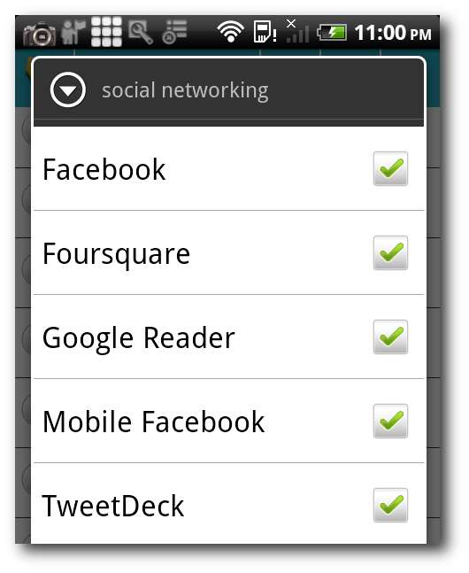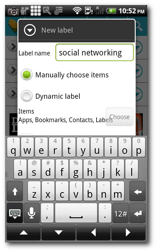 Nhấn vào nút mũi tên để hiển thị menu nhãn và nhấn vào nút Mục để gán nhãn cho các ứng dụng của bạn.