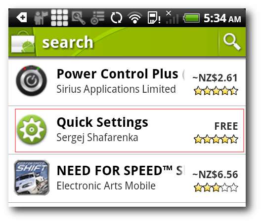 Nút tìm kiếm không hiển thị hộp thoại tìm kiếm? Tôi có thể đặt phím tắt trong nút tìm kiếm không? Câu trả lời cho cả hai là “Có”, với sự trợ giúp của một ứng dụng tiện lợi có tên “Cài đặt nhanh” cho phép chúng tôi truy cập các phím tắt cài đặt hệ thống thông qua nút tìm kiếm. Cách dễ nhất để cài đặt Cài đặt nhanh là tìm kiếm nó thông qua Android Market.