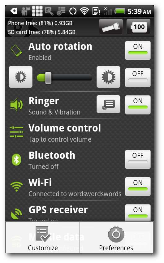 Nhấn giữ nút “tìm kiếm” trên Android của bạn trong vài giây để hiển thị màn hình chính Cài đặt nhanh, sau đó nhấn vào nút “menu” để hiển thị menu tùy chỉnh.