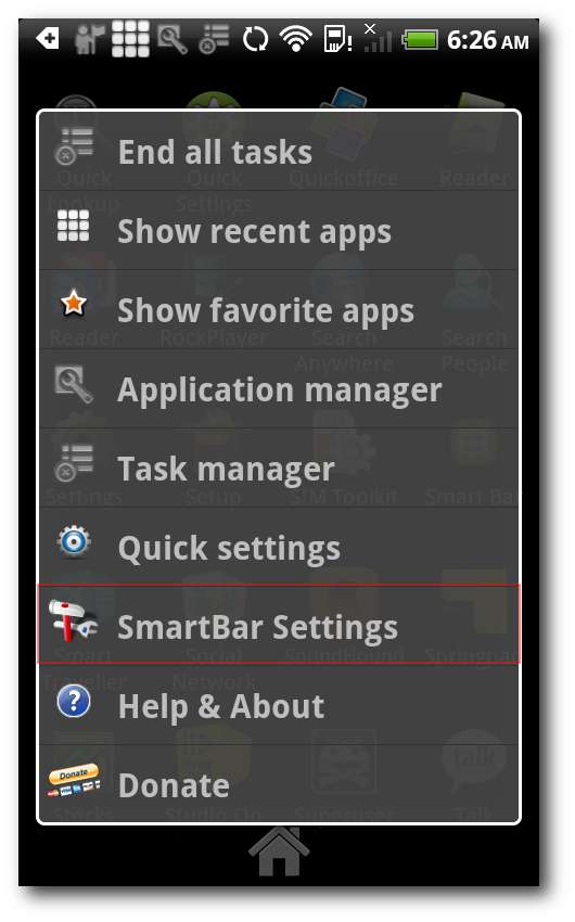 Smart Bar đặt một số tiện ích hữu ích trên thanh menu của bạn để truy cập nhanh. Bạn sẽ thấy Smart Bar từ màn hình ứng dụng Android sau khi bạn đã cài đặt nó trên thị trường.