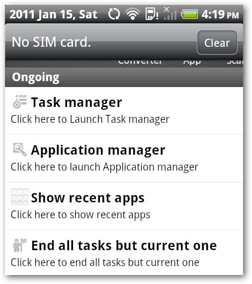 “Task Manager” hiển thị cho chúng ta danh sách các ứng dụng đang chạy và bộ nhớ mà chúng đang sử dụng. “Trình quản lý ứng dụng” là một tiện ích để sao lưu, khôi phục và gỡ cài đặt ứng dụng. “Hiển thị ứng dụng gần đây” cho phép chúng tôi truy cập nhanh vào 12 ứng dụng gần đây nhất mà chúng tôi đang sử dụng. "Kết thúc tất cả các tác vụ trừ tác vụ hiện tại" giải phóng bộ nhớ điện thoại của chúng tôi bằng cách loại bỏ các ứng dụng không hoạt động.