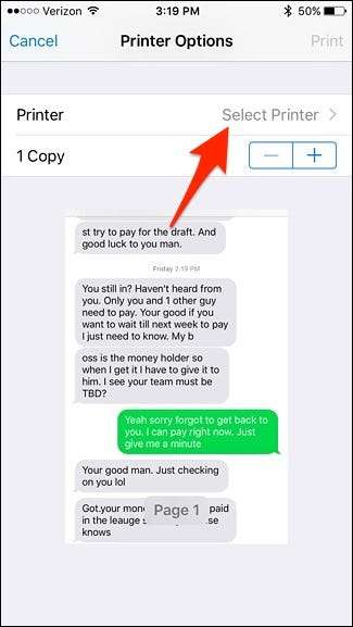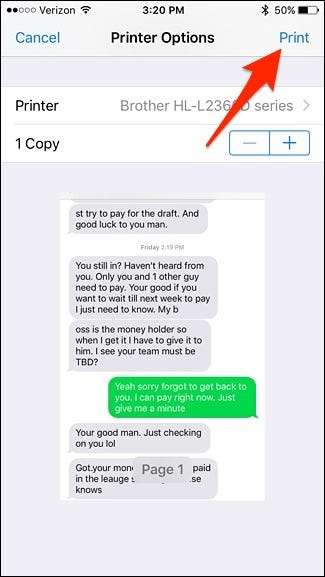 Nếu bạn có máy in hỗ trợ Apple’s AirPrint hoặc Google Cloud Print trên thiết bị Android, thì bạn có thể in các cuộc trò chuyện bằng tin nhắn văn bản ngay từ thiết bị của mình. Nếu bạn không chắc máy in của mình có hỗ trợ một trong các tính năng này hay không, kiểm tra ở đây để xem máy in của bạn có hỗ trợ AirPrint hay không và kiểm tra ở đây cho Google Cloud Print.