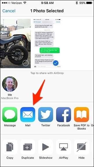 Trong iOS, bạn có thể chọn (các) ảnh chụp màn hình, nhấn nút chia sẻ và chọn “Thư” từ các tùy chọn. Cũng giống như trên Android, bạn cũng có thể lưu chúng vào Dropbox, Google Drive hoặc dịch vụ đám mây khác và truy cập chúng từ máy tính của mình.