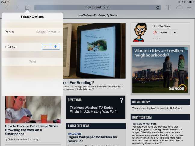 Một tìm kiếm nhanh trên Amazon cho thấy máy in hỗ trợ AirPrint có thể có với giá chỉ 60 đô la. Mua một trong những máy in này và thực hiện quy trình thiết lập để kết nối với mạng Wi-Fi của bạn. Khi iPad của bạn và máy in AirPrint được kết nối với cùng một mạng Wi-Fi, iPad của bạn sẽ tự động phát hiện máy in. Khi bạn chọn tùy chọn In trong một ứng dụng - chẳng hạn như trình duyệt web Safari - bạn sẽ có thể chọn từ danh sách các máy in AirPrint được phát hiện tự động và in chúng. Không yêu cầu quy trình thiết lập, tài khoản hoặc trình điều khiển máy in tẻ nhạt.