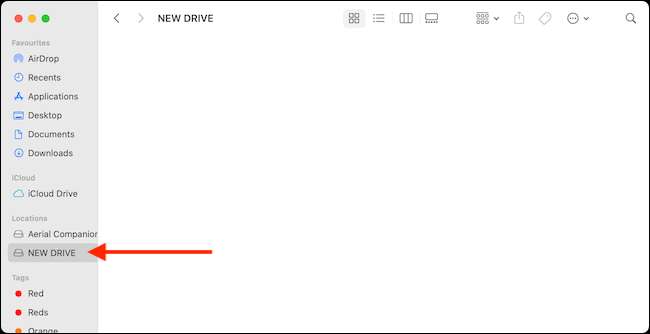 Khi bạn quay lại Finder, bạn sẽ tìm thấy ổ đĩa mới được định dạng, với tên mới, trong thanh bên. Khi bạn chọn ổ đĩa, nó sẽ trống.