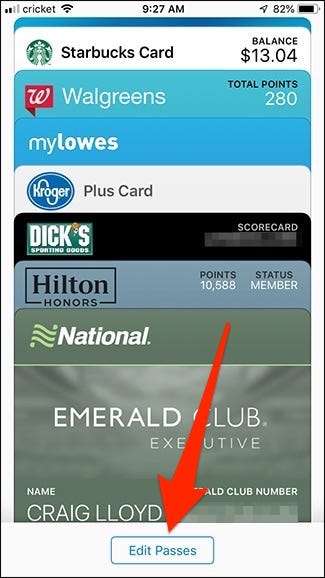Mở ứng dụng Wallet và cuộn xuống dưới cùng. Nhấn vào nút "Chỉnh sửa thẻ".