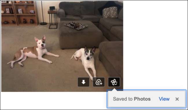 Nhấp vào "Lưu vào ảnh" và sau một lát, mong muốn của bạn sẽ được cấp. Bạn có thể nhấp vào "Xem" để đi thẳng vào Google Photos và xác nhận rằng ảnh của bạn có ở đó nếu bạn thích.