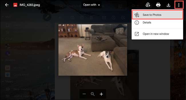 Nếu bạn nhấp vào hình ảnh trong email của bạn để xem bản xem trước của nó, bạn cũng có thể lưu nó vào ảnh Google từ màn hình này.