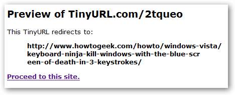 Có một tính năng trên trang TinyURL.com sẽ hiển thị cho bạn bản xem trước của URL đích cuối cùng và thậm chí không cần đăng nhập… nó chỉ đặt một cookie trên trình duyệt của bạn.