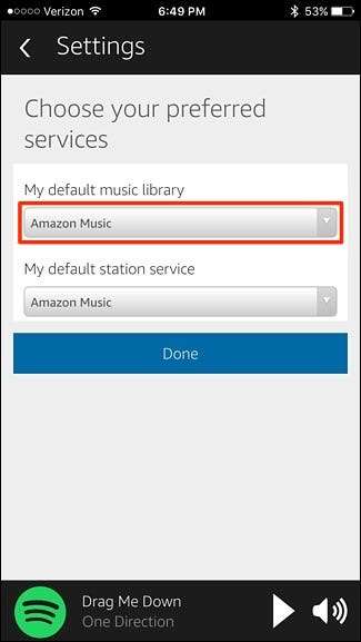 Sau đó, bạn sẽ không cần phải bật “trên Spotify” bất cứ khi nào bạn muốn Alexa phát nhạc từ dịch vụ âm nhạc của bên thứ ba. Bạn vẫn có thể sử dụng Amazon Music khi muốn bằng cách nhấn vào “trên Amazon Music” ở cuối một lệnh, nhưng theo mặc định, Echo sẽ sử dụng Spotify từ bây giờ.