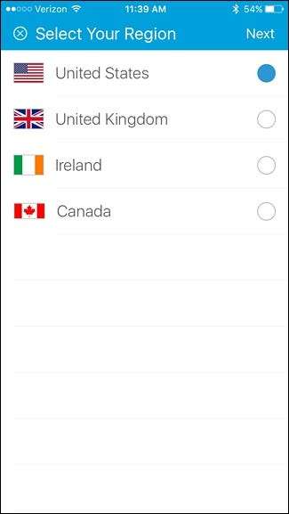 Chọn quốc gia bạn đang sống và nhấn “Tiếp theo”.