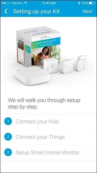 Bây giờ bạn sẽ bắt đầu kết nối các cảm biến khác nhau của mình với trung tâm và bắt đầu trang bị vũ khí và giám sát nơi ở của bạn. Nhấn vào “OK, OK.” xuống dưới cùng để bắt đầu.