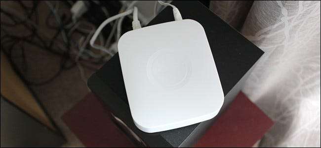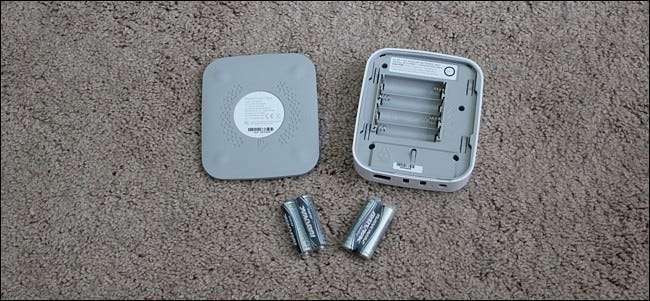 Giờ đây, bạn sẽ kết nối trung tâm SmartThings với mạng gia đình của mình. Bắt đầu bằng cách tháo nắp dưới và lắp bốn pin AA vào. Đây là những cục pin dự phòng trong trường hợp mất điện. Đậy nắp lại khi hoàn tất.