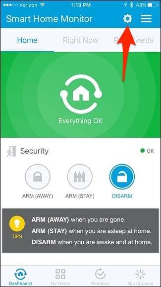 Để định cấu hình Smart Home Monitor, hãy bắt đầu bằng cách nhấn vào biểu tượng bánh răng cài đặt ở góc trên bên phải.