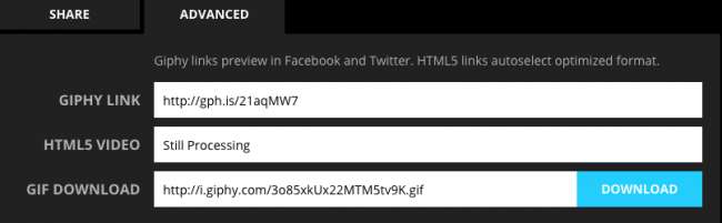 Mặt khác, nếu bạn muốn lưu cục bộ GIF động mới vào máy tính của mình, thì bạn có thể nhấp vào tab “Nâng cao” và tải xuống.