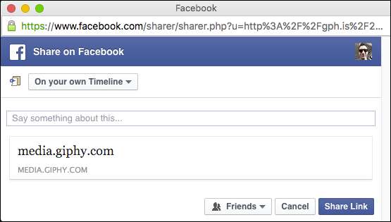Facebook vẫn không cho phép bạn đăng ảnh động GIF lên dòng thời gian của mình, vì vậy bạn phải sử dụng dịch vụ ảnh động GIF, chẳng hạn như Giphy.