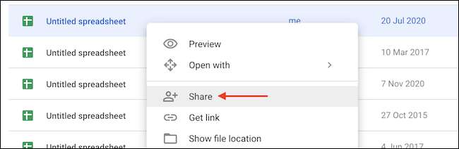 Đầu tiên, nhấp vào nút "Chia sẻ" trong thanh công cụ tài liệu. Sau đó, nhấp chuột phải vào tệp trong Google Drive và chọn "Chia sẻ".