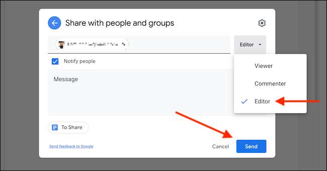 Đảm bảo rằng tùy chọn "Thông báo cho mọi người" được bật. Bằng cách này, họ sẽ nhận được một email về tài liệu khi bạn chia sẻ nó. Thêm một ghi chú tùy chọn nếu bạn muốn, rồi bấm vào nút "Gửi" để gửi lời mời.