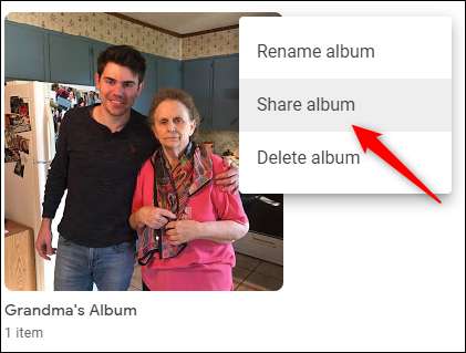 Một menu sẽ xuất hiện. Tại đây, chọn tùy chọn “Chia sẻ Album”.