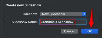 Trong cửa sổ xuất hiện, đặt tên cho trình chiếu của bạn, sau đó chọn nút “OK”.