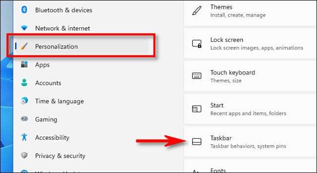 Khi cài đặt mở, hãy chọn "Cá nhân hóa" trong thanh bên, sau đó nhấp vào "Thanh tác vụ."