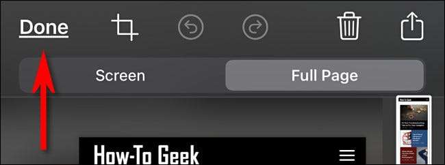 Sau khi nhấn vào hình thu nhỏ, bạn sẽ nhập chế độ chỉnh sửa ảnh chụp màn hình. Nhấn vào tab "Đầy đủ trang" nằm ngay bên dưới thanh công cụ ở trên cùng của màn hình. Bạn sẽ thấy bản xem trước của toàn bộ trang web xuất hiện dọc theo bên phải màn hình. Bạn có thể cuộn qua nó bằng cách trượt ngón tay của bạn.
