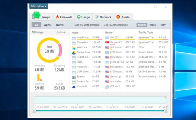 Các hệ điều hành khác nhau có các công cụ khác nhau có thể trợ giúp. GlassWire là một công cụ giám sát mạng miễn phí và được đánh giá cao sẽ theo dõi việc sử dụng dữ liệu trên tất cả các phiên bản Windows. Trên Windows 10 và 8, bạn cũng có thể đặt một kết nối cụ thể làm kết nối “được đo lường” và Windows sẽ theo dõi việc sử dụng dữ liệu cho nó. Tuy nhiên, điều này sẽ thay đổi cách Windows và một số ứng dụng sử dụng kết nối.