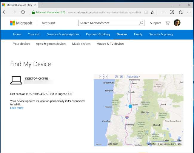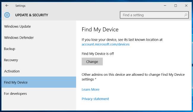 Trước đây, điều này bắt buộc phần mềm của bên thứ ba như Prey . Giờ đây, nó được tích hợp để mọi người sử dụng với tài khoản Microsoft. Nó bị tắt theo mặc định, vì vậy bạn sẽ phải bật nó trước khi mất thiết bị.