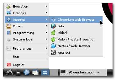 Sau khi cài đặt Chromium, chúng tôi cần khởi chạy nó từ môi trường máy tính để bàn. Bạn có thể tìm thấy nó trong menu bắt đầu của Raspbian trong Internet -> Trình duyệt web Chromium: