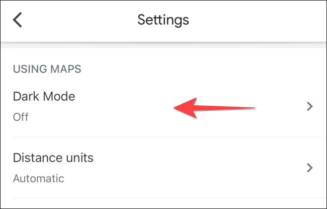 Trong phần "sử dụng bản đồ", hãy nhấn "Chế độ tối."