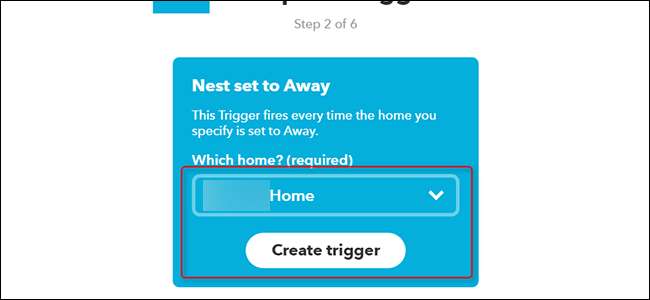 Trên màn hình tiếp theo, hãy chọn bộ điều nhiệt Nest mà bạn muốn theo dõi từ danh sách thả xuống (nếu bạn có nhiều bộ), sau đó nhấp vào “Tạo trình kích hoạt”.
