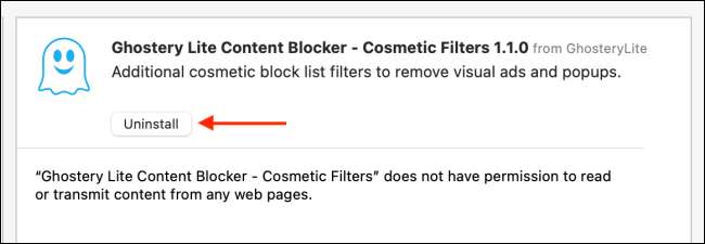 Khi tiện ích mở rộng bị xóa (chuyển sang thùng rác), bạn sẽ thấy rằng nó biến mất khỏi thanh mở rộng Safari và từ Safari Preferences.