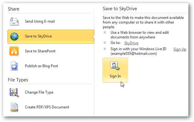 Trong Lưu vào SkyDrive, nhấp vào nút Đăng nhập.