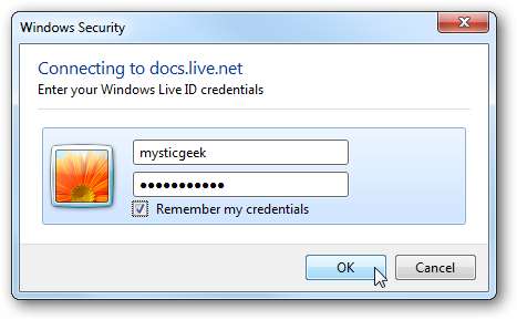 Hộp thoại đăng nhập sẽ mở ra để bạn nhập thông tin đăng nhập Windows LiveID của mình.