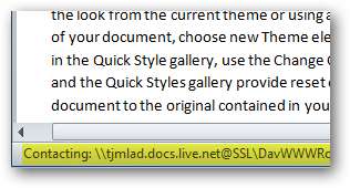 Trong khi kết nối với SkyDrive, bạn sẽ thấy URL được liên hệ trên Thanh trạng thái nằm ở cuối Word.
