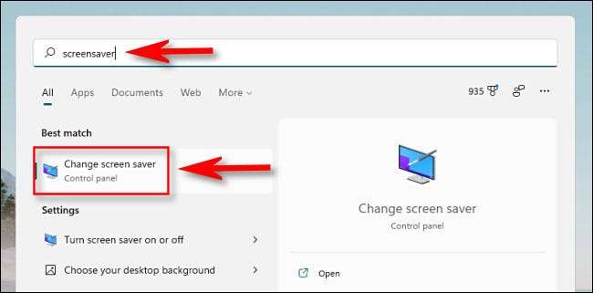 Đầu tiên, nhấp vào nút Bắt đầu trong thanh tác vụ của bạn và nhập "Trình bảo vệ màn hình." Trong kết quả "MATCHOOD" tốt nhất bên dưới, nhấp vào "Thay đổi trình bảo vệ màn hình".