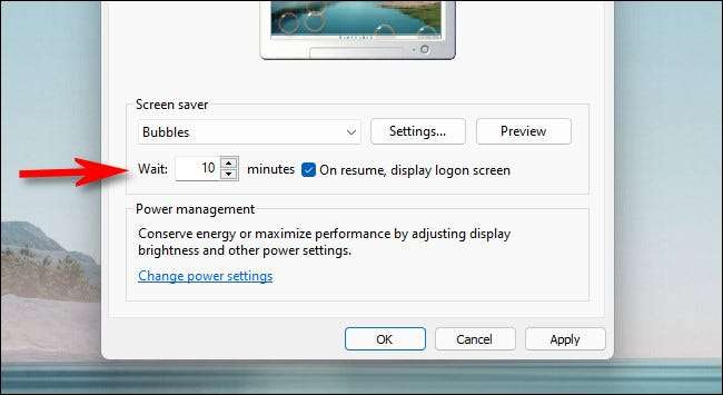 Tiếp theo, sử dụng hộp bên cạnh "Đợi" để đặt độ trễ trình bảo vệ màn hình trong vài phút. Nếu PC của bạn không hoạt động trong khoảng thời gian này, trình bảo vệ màn hình của bạn sẽ tự động kích hoạt. Và nếu bạn muốn cho PC của bạn Khóa (và hiển thị màn hình đăng nhập) [số 8] Khi trình bảo vệ màn hình thoát, hãy chọn hộp bên cạnh "trên sơ yếu lý lịch, màn hình đăng nhập hiển thị."